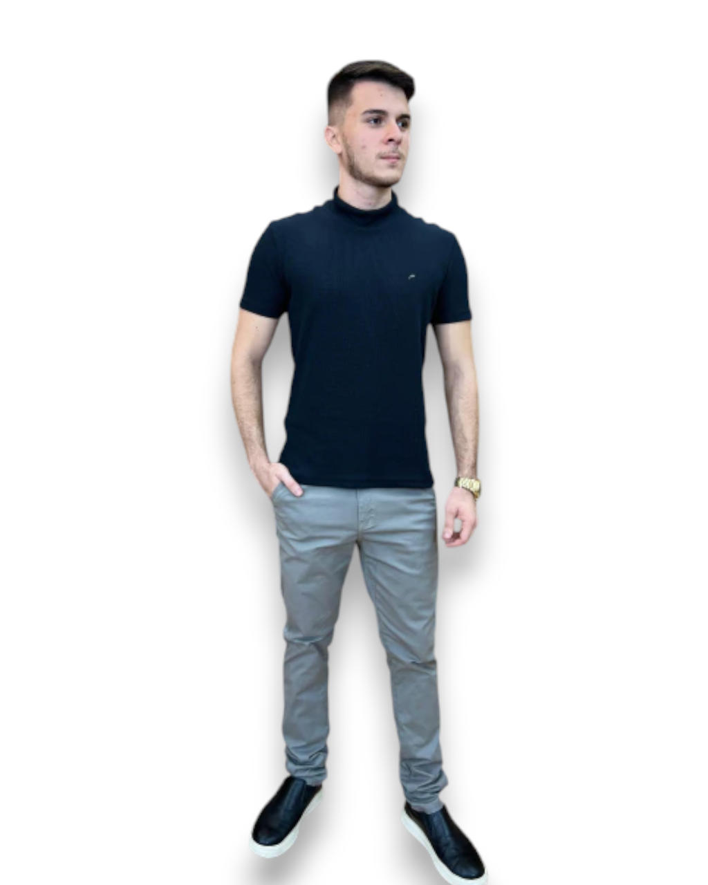 A Calça Chino Alfaiataria da AlphaMens foi pensada para o homem moderno que busca unir elegância e conforto no dia a dia. Com modelagem esporte fino e caimento ajustado, ela é confeccionada em brim com elastano de alta qualidade, oferecendo liberdade de movimento sem perder a estrutura.